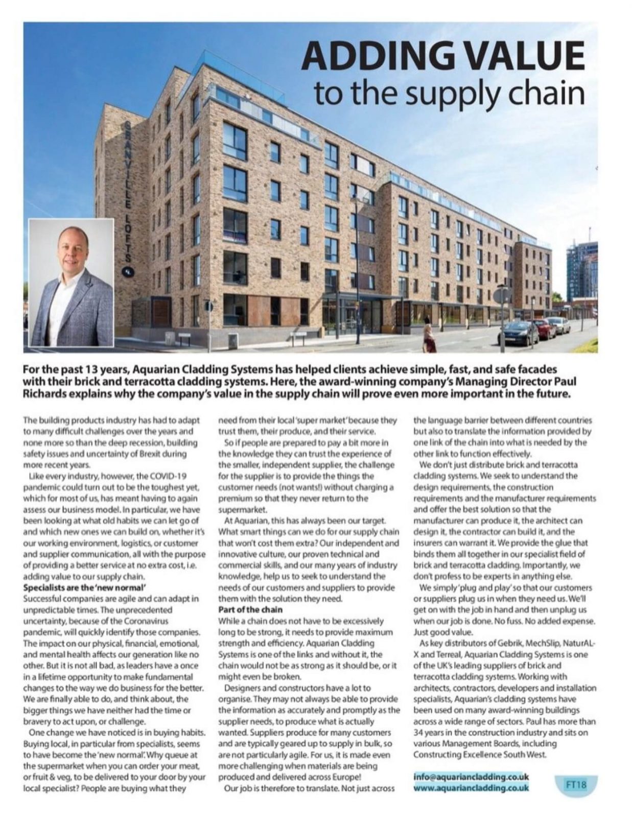 Founded in 2007, Aquarian Cladding Systems is a specialist external brick cladding supplier. The company’s product portfolio consists innovative brick cladding systems Gebrik and Mechslip, and an A1-rated Terreal terracotta rainscreen system. Working with architects, contractors, developers and installation specialists, Aquarian’s cladding systems have been used on many award-winning buildings across a wide range of sectors.