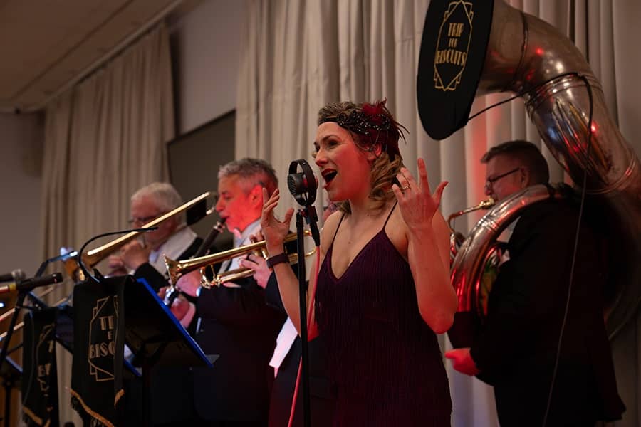 After that, we were ushered upstairs for a welcome speech from Andrew, a three-course dinner and dancing to trad jazz band Trip For Biscuits, playing today’s hits in an authentic 1920s Dixieland/Charleston style.